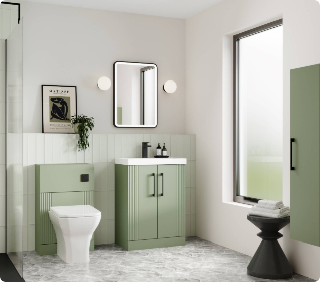 Sage GreenMuted, calming greenWalls, accessoriesWashbasins, shower trays, wall tiles