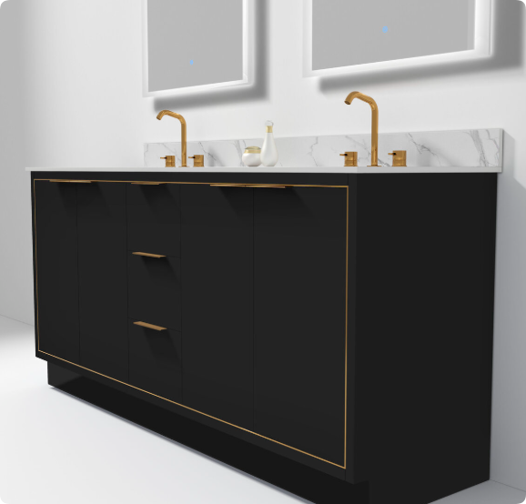 Q: What’s the benefit of pairing a vanity with a smart mirror? A: Smart mirrors enhance functionality with integrated lighting, defogging, and connectivity features, ideal for modern luxury settings.